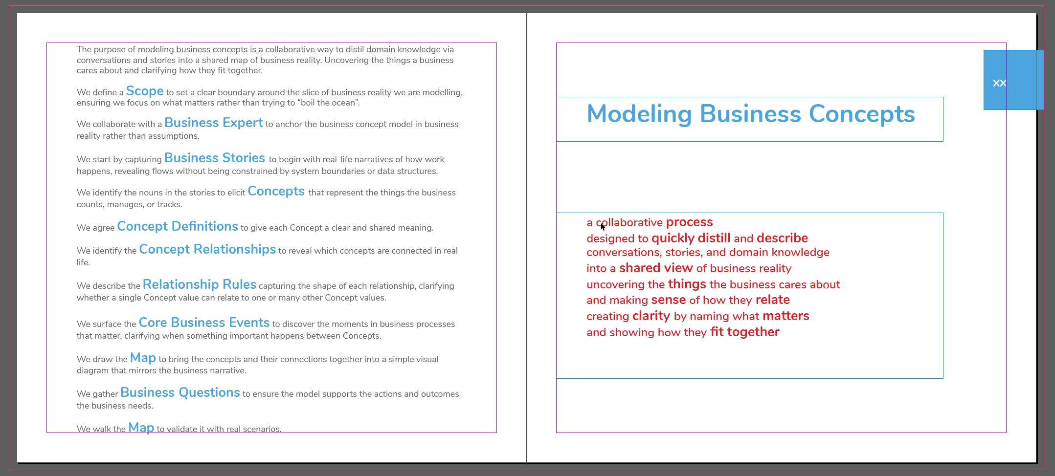 As part of writing a book to teach the process of Modeling Business Concepts we need to understand and then converge our different ways of working, so we can write a shared approach that is easier to understand and follow.