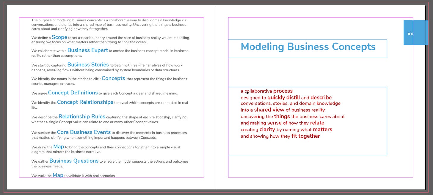 One of the things we have learned as we compared our slightly different ways of creating Business Concept models, is often we do a step unconsciously, especially when it comes to capturing the Business Story / Narrative, more on that later and in another article.