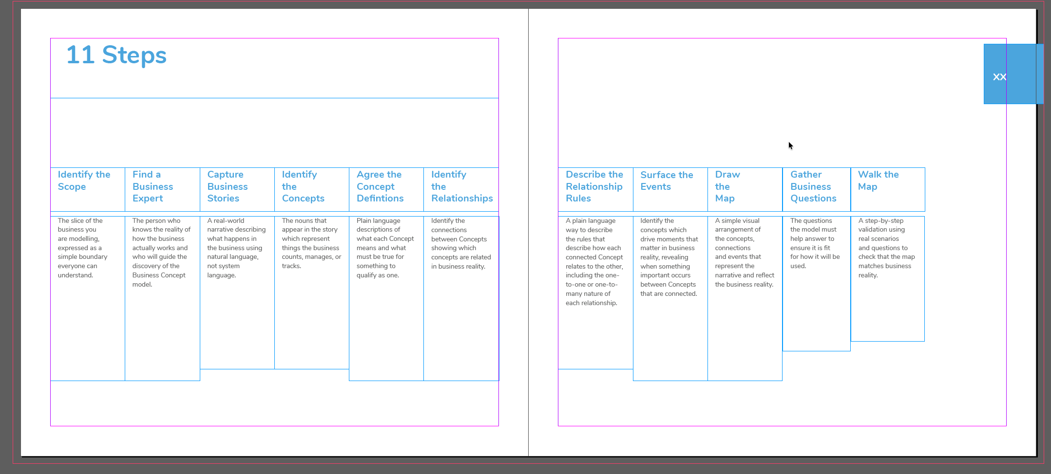 The goal of this version is to elicit a conversation between Juha and myself. To be able to point at a specific step in the process and say “I don’t think it belongs there” or “I think it should be called something else” or “I think the description of that step needs to be iterated”, or just “WTF are you thinking”.